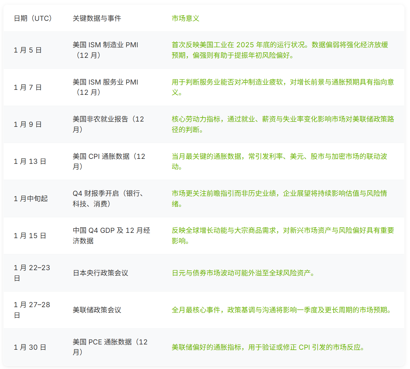 2026年市場の焦点:1月のマクロカレンダーと主要な推進要因の分析