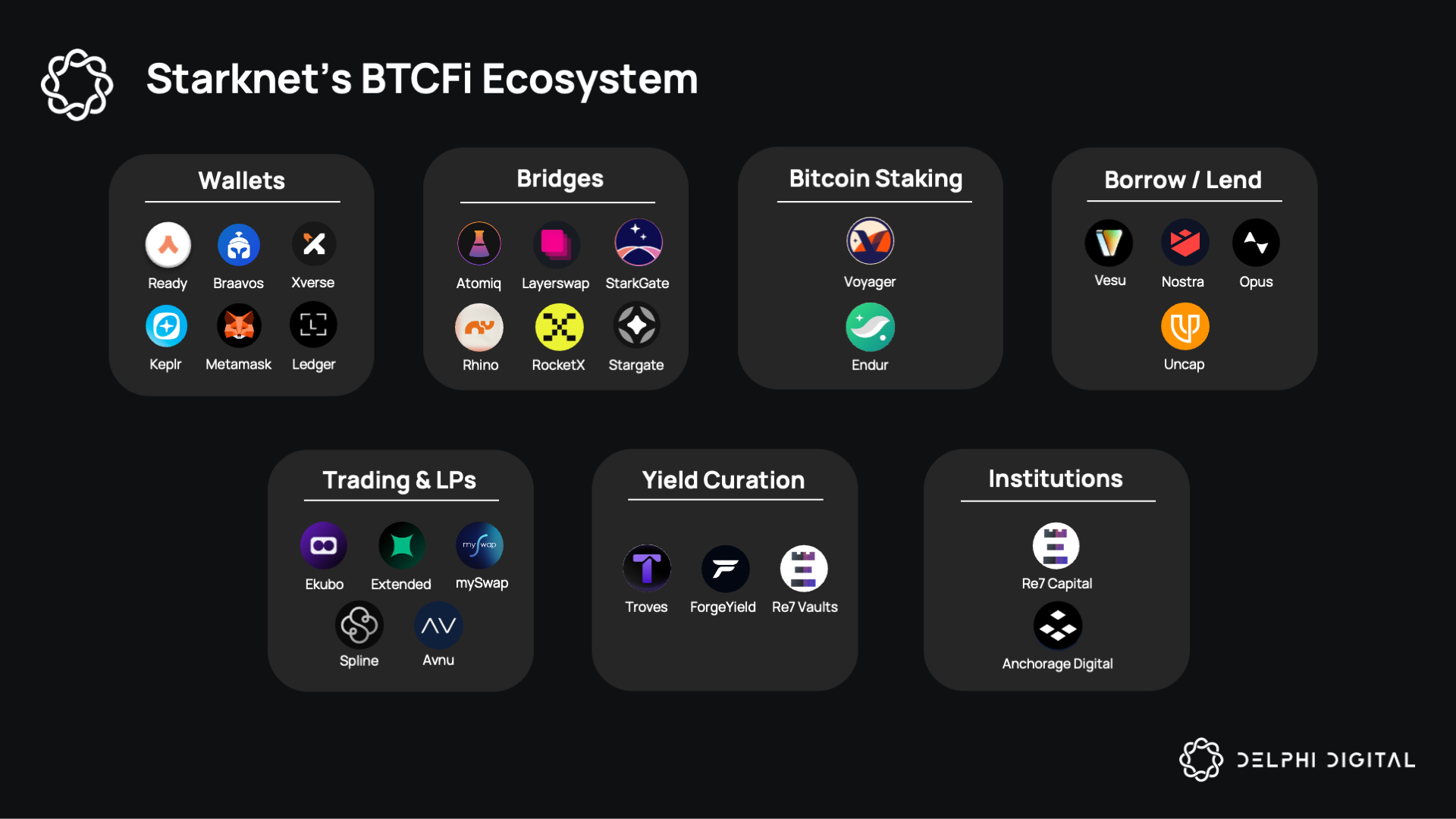 - エコシステムの段階的な充実:BTCFiを中心に、Starknetはウォレット、クロスチェーンブリッジ、ステーキングからレンディング・イールドプロトコルまでの完全なエコシステムを構築し、ユースケースは確立されています。