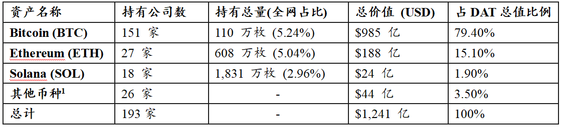 上記の状況に基づくと、世界の上場企業DATの基本的な構造は以下の通りである: