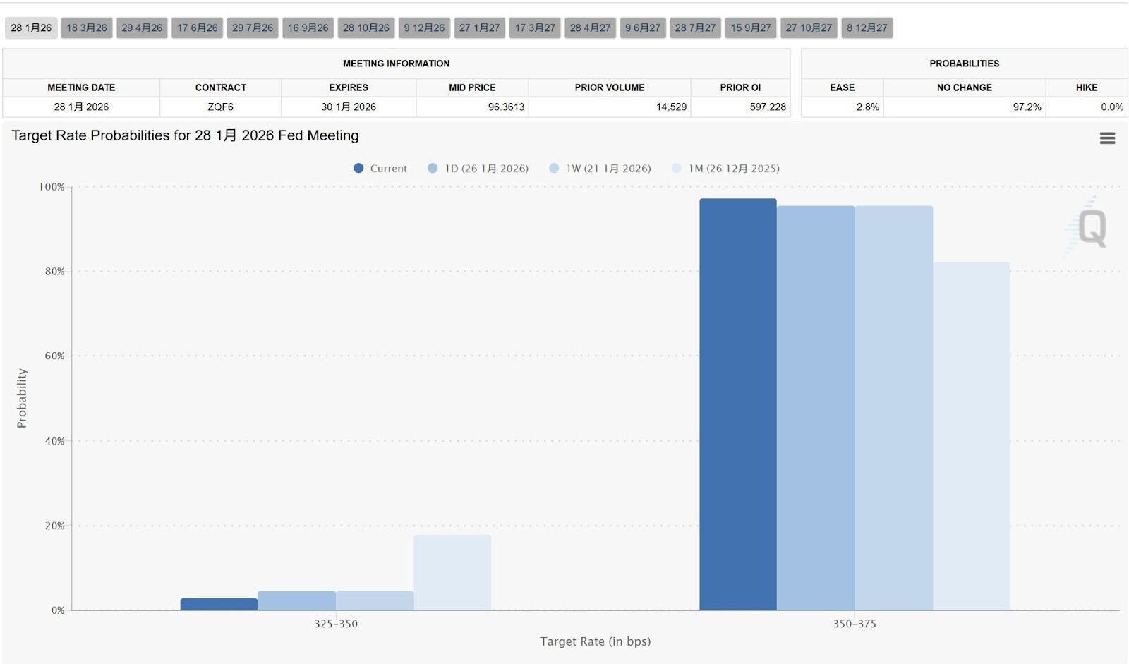 これは利下げ幅を定量化する最も直感的なツールです。連邦基金先物価格に基づいて利下げ確率を計算します。