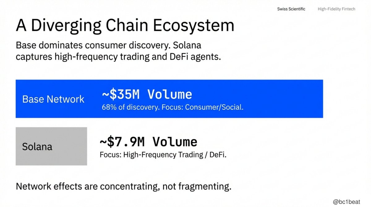 - Baseチェーンは深い統合により支配的な地位を占め(1月のサービス登録の68%)、Solanaは取引型シナリオで優位に立っており、ネットワーク効果は集中化に向かっている。