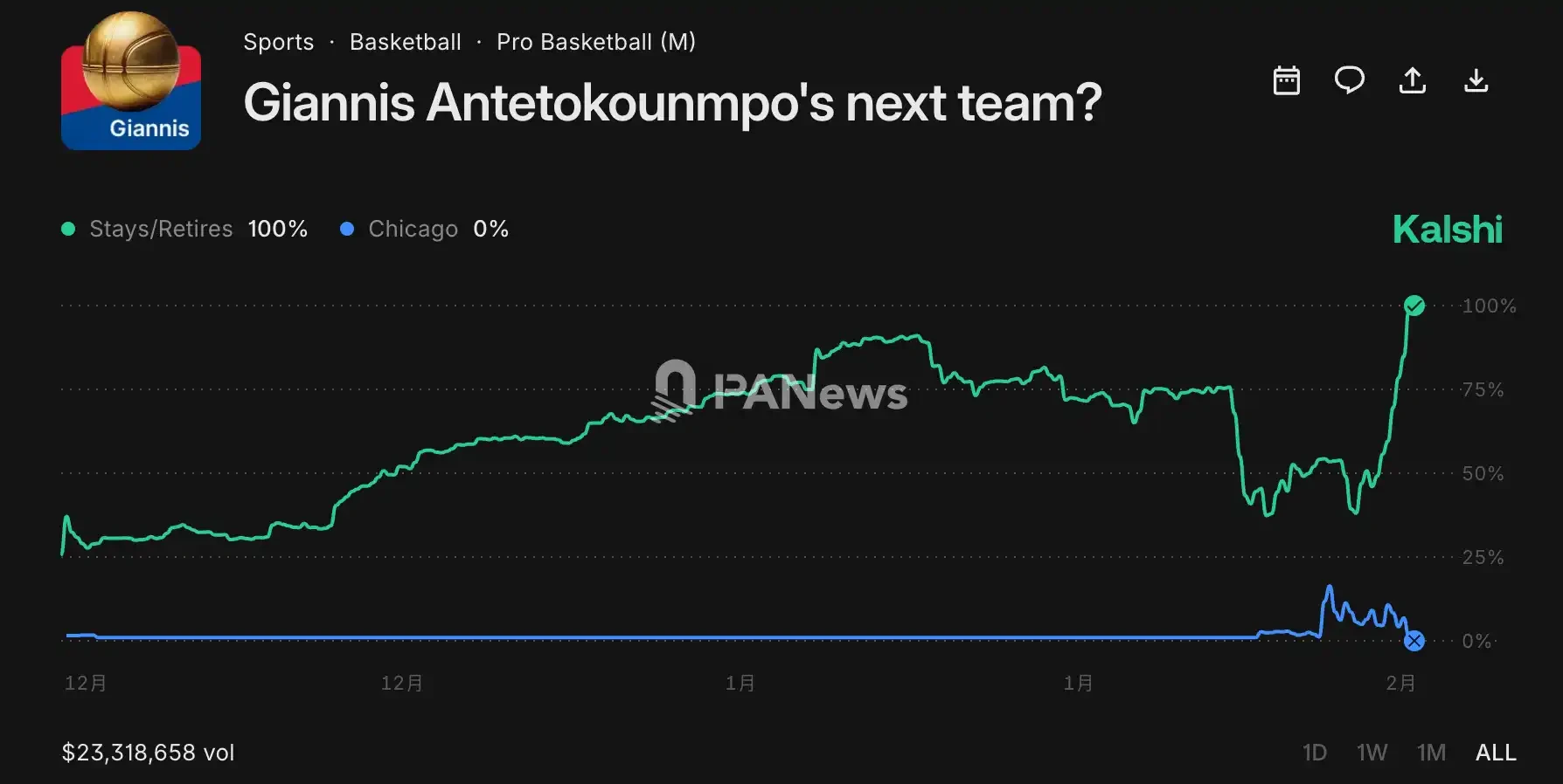 - 市場への影響:「Giannis Antetokounmpoの去就」を巡るKalshiの契約取引量は2,330万ドルを超え、同プラットフォームで最も人気のあるNBA単一イベント契約の一つとなっている。