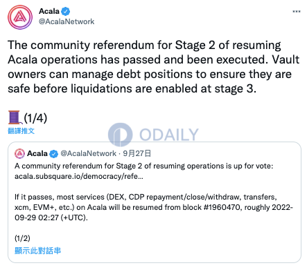 Acala는 운영 재개를 위한 커뮤니티 투표의 두 번째 단계를 통과하고 실행했습니다.