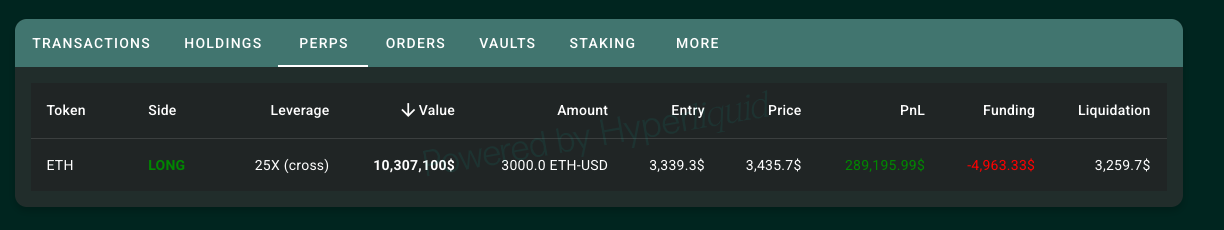온체인 데이터에 따르면, 오데일리 플래닛 데일리는 "브라더 마치"가 어젯밤부터 오늘 아침까지 ETH 롱 포지션을 지속적으로 늘려왔다고 보도했습니다. 현재 그는 25배 레버리지로 3,000 ETH를 보유하고 있으며, 보유 가치는 약 1,030만 달러, 청산 가격은 3,159.7달러입니다.