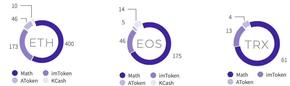 그 중 Math 및 imToken 브라우저는 게임, 커뮤니티 및 기타 애플리케이션에 대한 ETH2.0 서약 서비스를 포함하여 다양한 퍼블릭 체인에서 DApp 애플리케이션을 분류했습니다. Math Wallet이 연결된 65개의 퍼블릭 체인 중 ETH에 400개 이상, EOS에 175개, TRON에 98개 이상의 애플리케이션이 있어 모든 지갑 중에서 가장 풍부한 DApp 연결이 있는 지갑입니다.