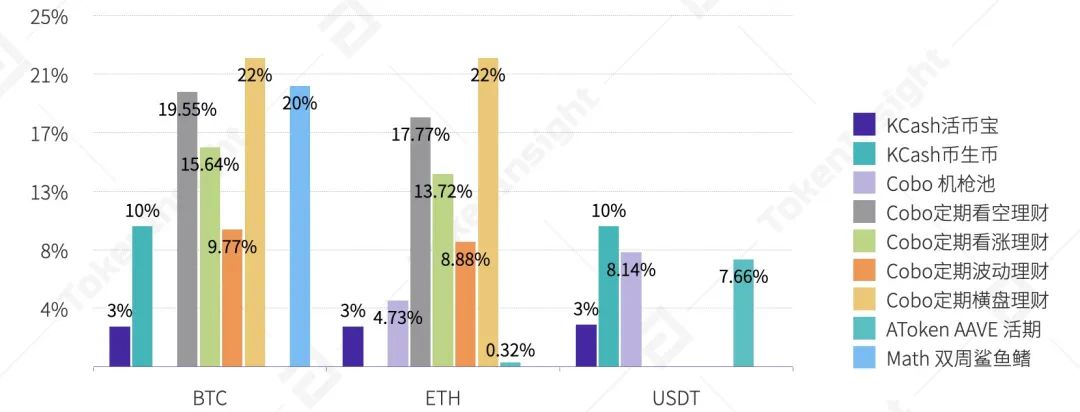 BTC, ETH, USDT 자산 관리 제품의 디지털 지갑 수익률 정보, 출처: TokenInsight