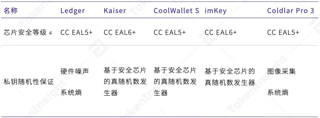 따라서 첫 번째 관점에서 소프트웨어 지갑은 다양한 브라우저, IOS 및 Android 시스템과 같은 알고리즘 설계의 다양한 환경에서 개인 키의 난수가 생성될 수 있도록 보장해야 합니다. 두 번째는 생성된 난수의 반복률을 낮추어 개인 키의 난수성 위험을 효과적으로 제어할 수 있도록 하는 것입니다. 하드웨어 지갑의 경우 난수 생성을 위해 주로 자체 보안 칩에 의존합니다. 일부는 다양한 지갑의 난수 생성 방법을 나열합니다.