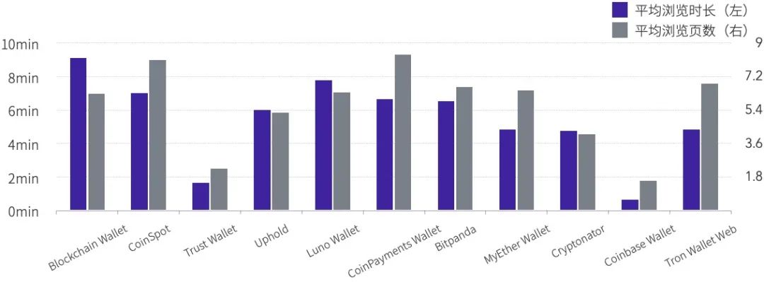 상위 11개 소프트웨어 지갑 방문의 브라우징 시간 및 페이지 수, 출처: SimilarWeb, TokenInsight