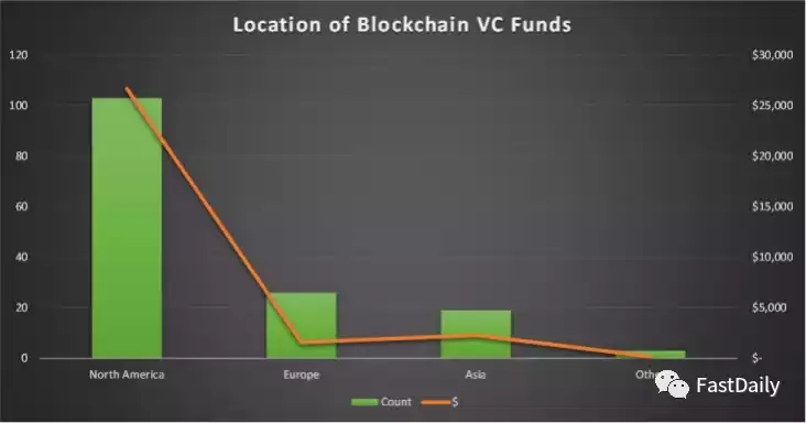 북미는 블록체인 벤처 캐피탈 펀드의 지배적인 위치로 남아 있으며, 펀드의 68%가 이 지역에 있고 업계 자본 기반의 87%를 차지합니다.