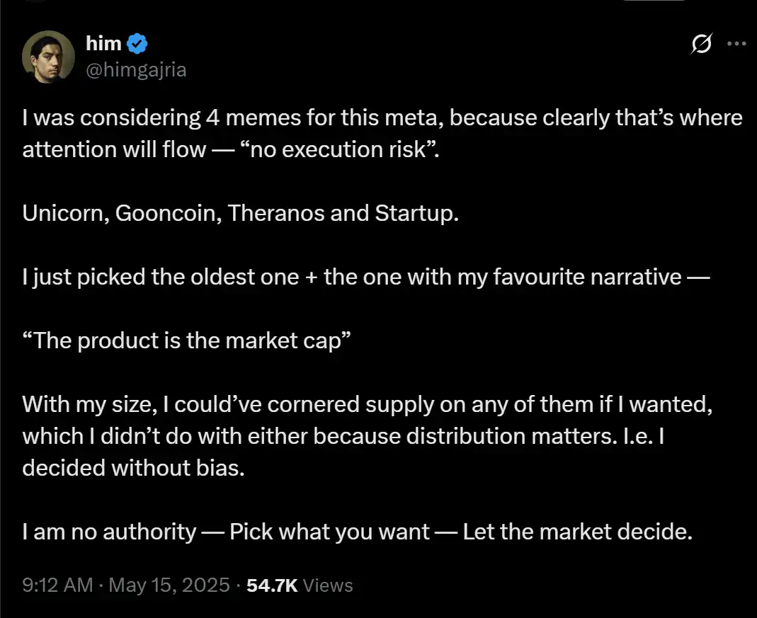 유니콘, 곤코인, 테라노스, 스타트업 중에서 가장 오래된 것과 제가 가장 좋아하는 이야기를 골랐습니다. "제품은 시장 가치다" (이 문장은 밈 코인 스타트업의 공식 X 계정의 약력입니다).