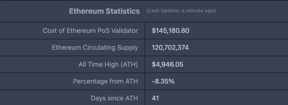 ETHUSD: 현재 가격: $4,537.29, 역대 최고가: $4,946.05, 이전 최고가 대비 약 8.35% 하락.