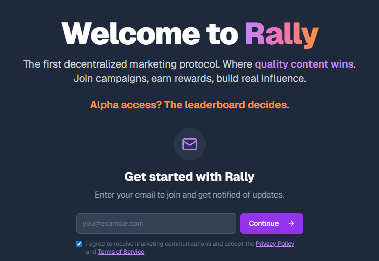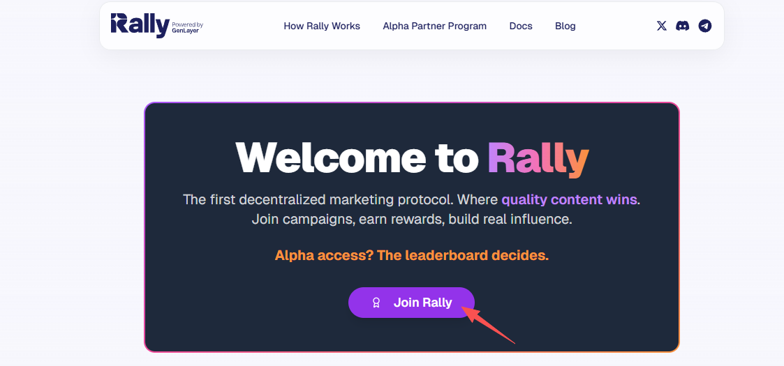 공식 웹사이트(링크: https://waitlist.rally.fun/joinme/ )로 가서 "Rally 가입"을 클릭하고 이메일 주소를 입력한 후 개인 X 계정을 연결하여 조기 화이트리스트 신청을 완료하세요.