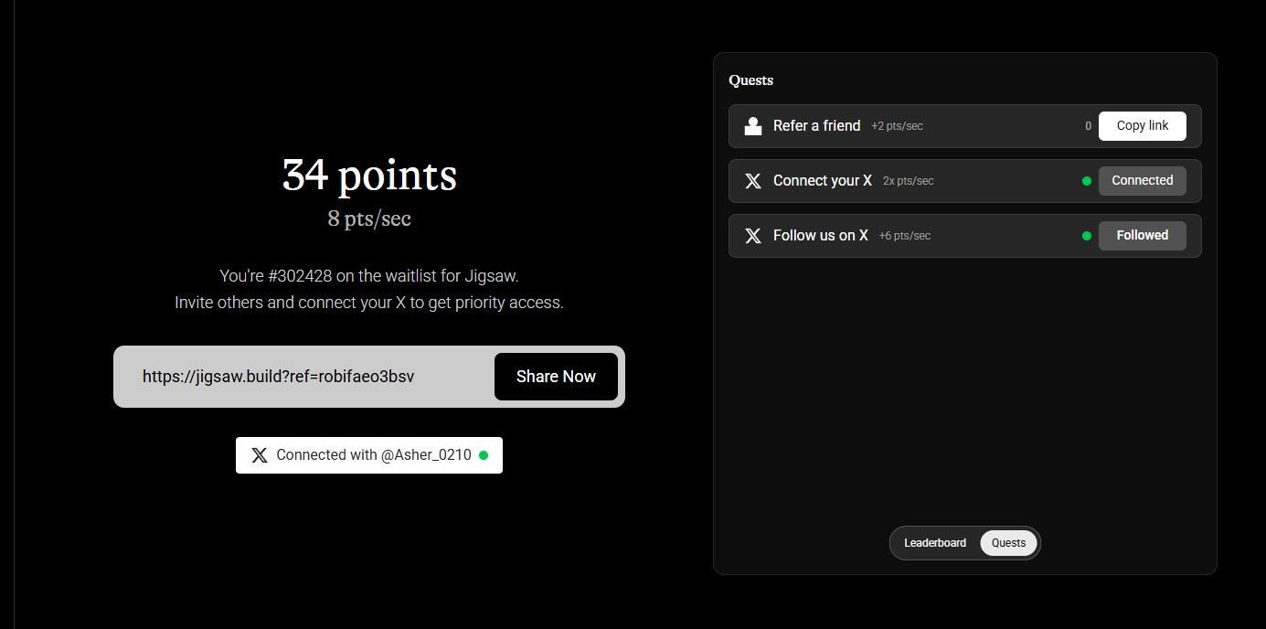 공식 웹사이트(링크: https://jigsaw.build/ )로 가서 "대기 목록에 가입"을 클릭하고 Gmail로 로그인하여 조기 허용 목록 신청을 완료하세요.