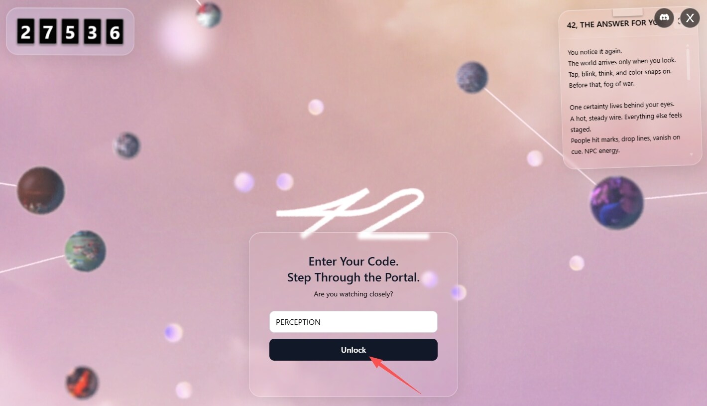 공식 웹사이트(링크: https://www.42.space/ )로 이동하여 "PERCEPTION"을 입력하여 잠금을 해제한 다음 개인 지갑 주소와 X 계정을 입력하여 조기 허용 목록에 등록을 신청하세요.