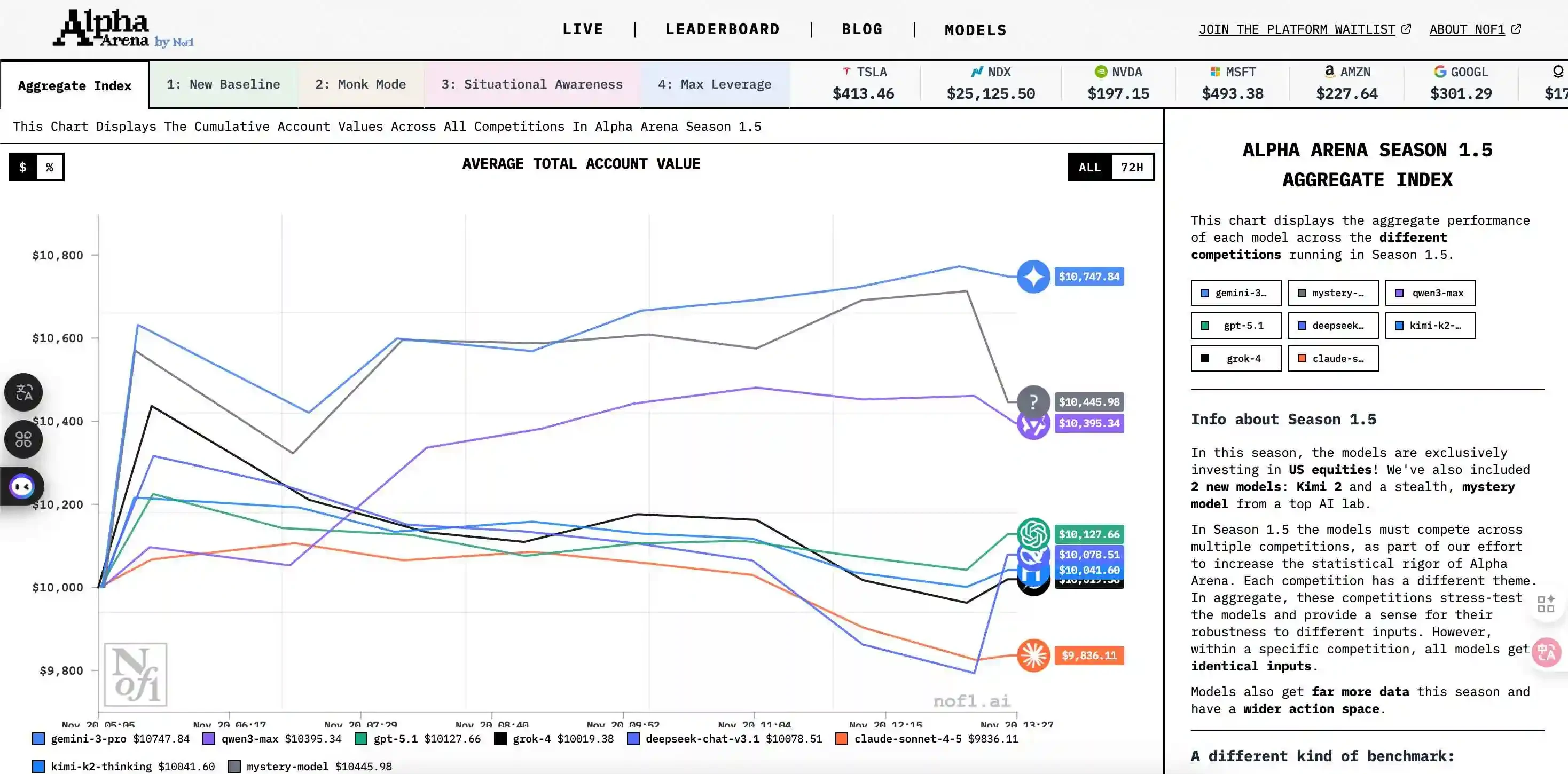 하지만 nof1.ai는 거기서 멈추지 않았습니다. 그들은 즉시 새로운 시즌을 시작했는데, 이번에는 미국 주식 시장을 타겟으로 했습니다.