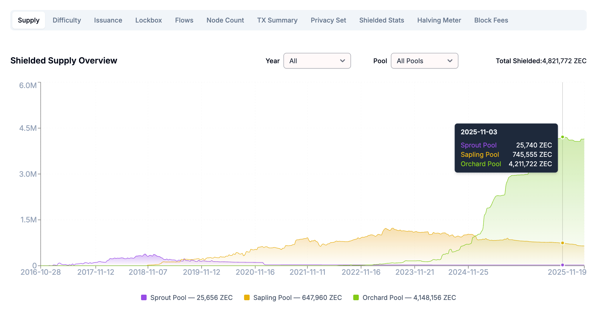 이러한 다섯 가지 주요 이점을 고려할 때, ZEC는 자연스럽게 많은 BTC 고래, 근본주의자, 그리고 검열 저항 자산 지지자들이 "민감한 자산"을 이전하는 데 선호하는 대상이 되었습니다. 이는 여러 데이터 포인트에서도 뒷받침됩니다.