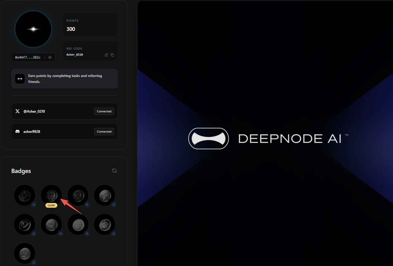 1단계. 인터랙티브 웹사이트(링크: https://dive.deepnode.ai/ )에 접속하여 Web3 지갑에 연결하세요.