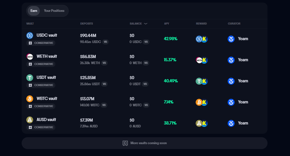 Katana는 Polygon Labs와 암호화폐 거래 회사 GSR이 공동으로 출시한 DeFi 전용 블록체인으로, 메인넷은 지난해 7월 초에 출시되었습니다. Katana는 현재 사용자가 USDC, USDT, AUSD, ETH, WBTC 등의 자산을 예치할 수 있도록 지원하며, 해당 프로젝트는 100억 개의 네이티브 토큰 KAT을 유동성 인센티브로 제공할 것이라고 발표했습니다.