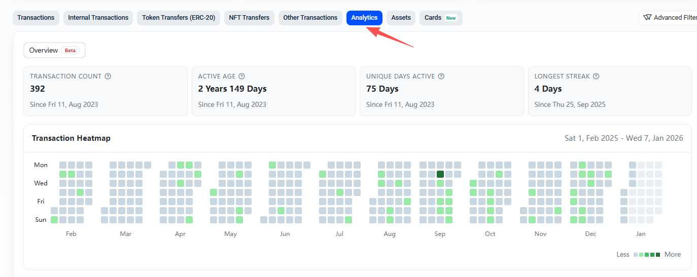한편으로는 Base 네트워크 블록체인 익스플로러에 접속하여 개인 주소의 활동 정도를 확인합니다.