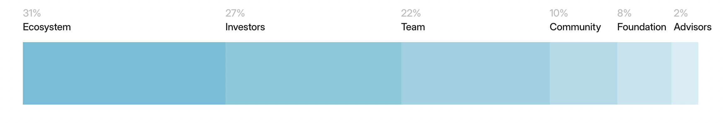 ETHGas 프로젝트의 토큰 GWEI 총 공급량은 1000억 개이며, 생태계가 31%, 투자자가 27%, 팀이 22%, 커뮤니티가 10%, 재단이 8%, 고문이 2%를 차지합니다(락업 조건 등 세부 사항은 공개되지 않았습니다).