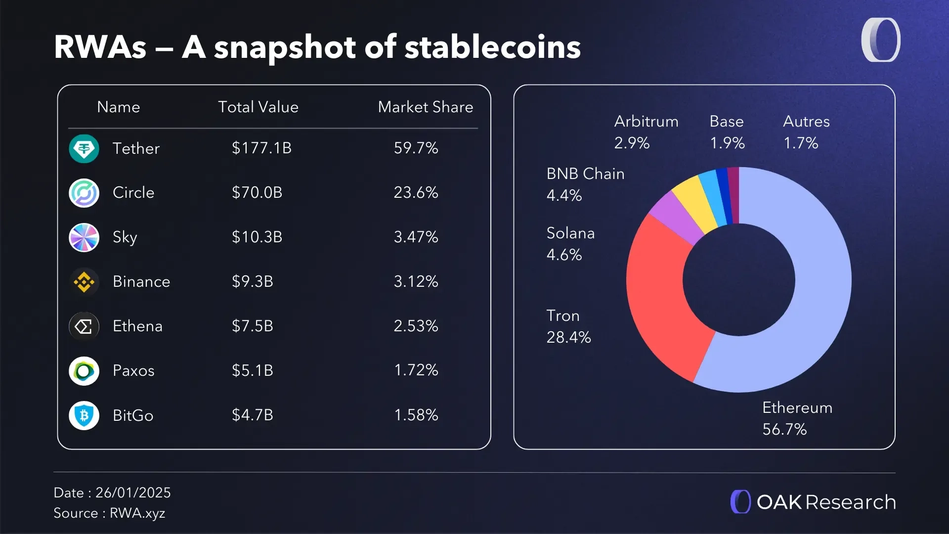 실제로, 스테이블코인은 단지 제품이 아니라 인프라입니다. 그들은 결제 연속성, 시장 유동성, 그리고 전통 금융과 온체인 금융 간의 연결을 보장하므로 전체 RWA 시장에서 구조적 가치를 포착합니다.