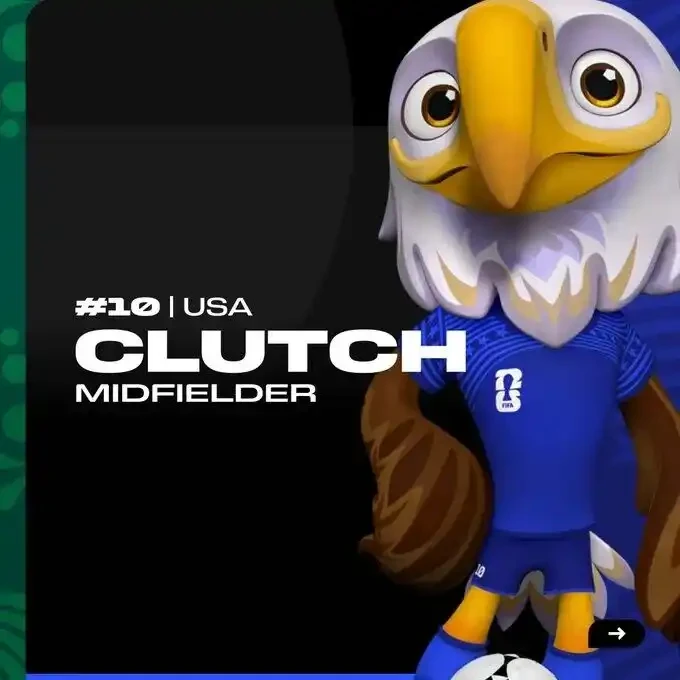 太空叙事里还有一个异类。$CLUTCH 不走太空线,而是蹭了另一个临近的真实事件:2026 年 6 月 11 日即将开幕 的 FIFA 世界杯。Clutch 是 FIFA 官方发布的美国队吉祥物,一只白头鹰,身穿 10 号球衣。