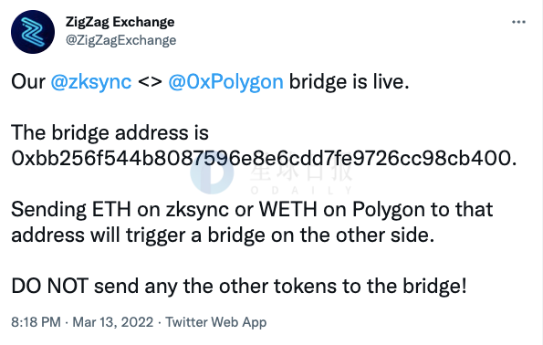ZK Rollup 기반 DEX ZigZag, zkSync 및 Polygon 크로스체인 브리지 테스트 버전 출시