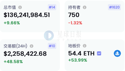 NFT项目Bored Ape Chemistry Club地板价突破54 ETH,市值超1.3亿美元