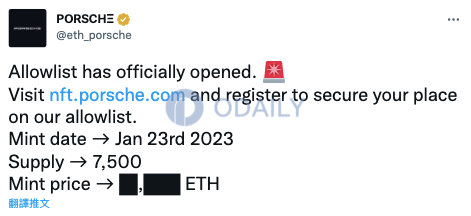 保时捷NFT已正式开放注册,铸造日定为1月23日