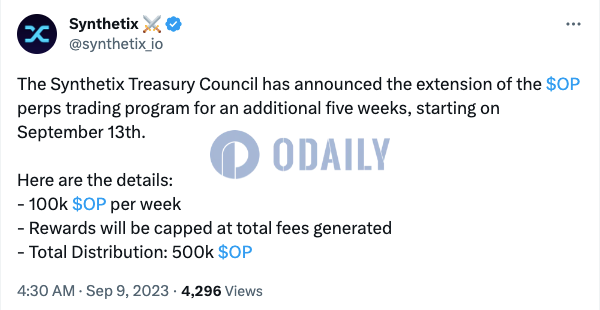 Synthetix will extend OP incentive program for perpetual contract trading by five weeks