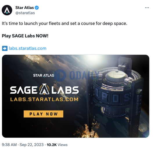 Odaily星球日报讯 据官方消息,Solana生态链游Star Atlas推出早期访问版本SAGE Labs。