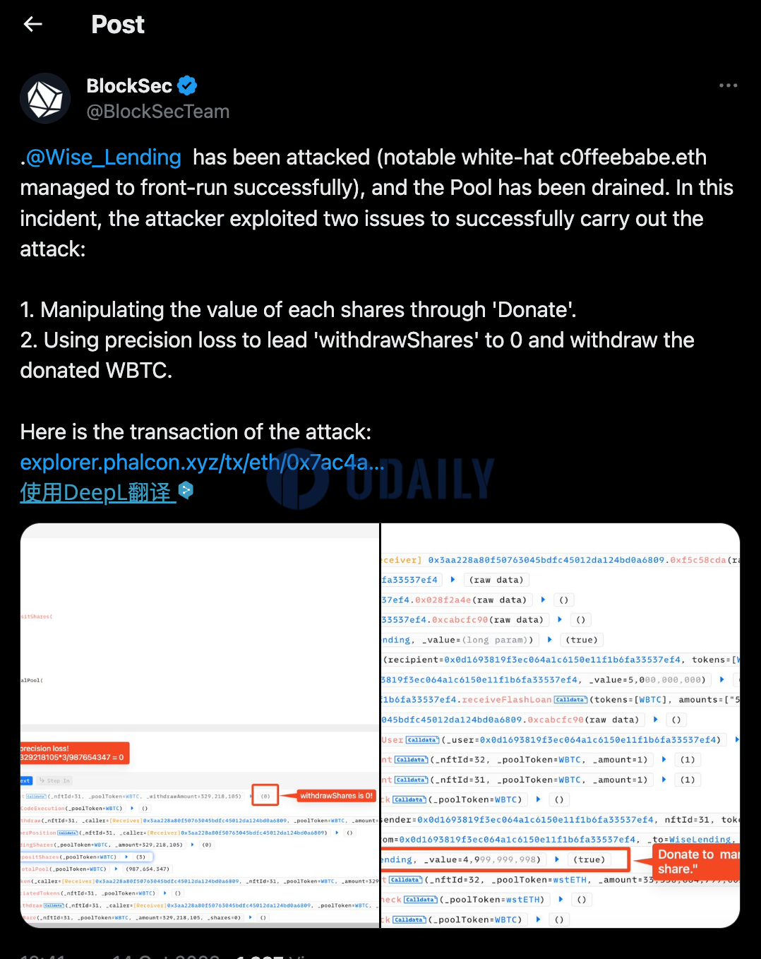 BlockSec:WiseLending遭攻击,资金池已被耗尽
