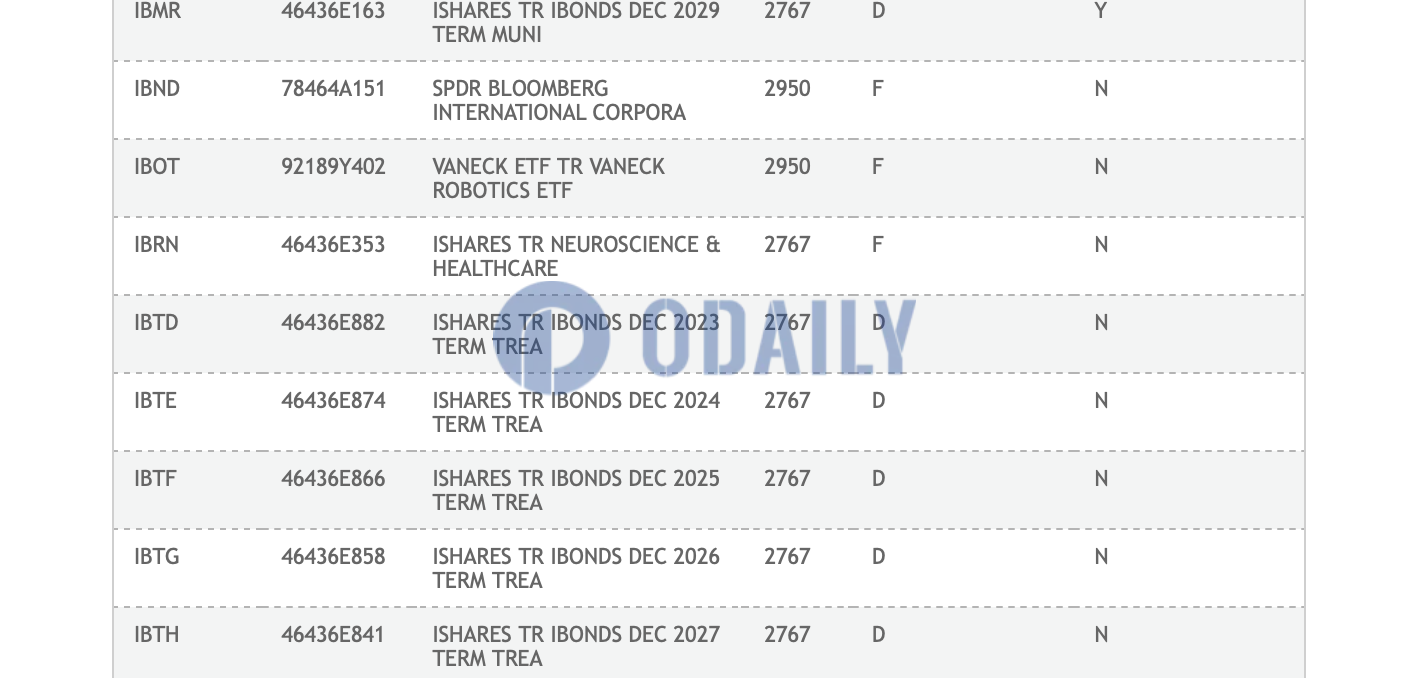 Odaily星球日报讯 经查看,贝莱德iShares Bitcoin Trust(IBTC)已从DTCC页面移除。彭博社ETF分析师James Seyffart猜测,贝莱德可能是收到了SEC的通知。