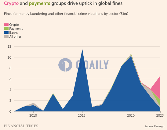 2023年加密货币和数字支付领域的罚款金额超过传统金融领域