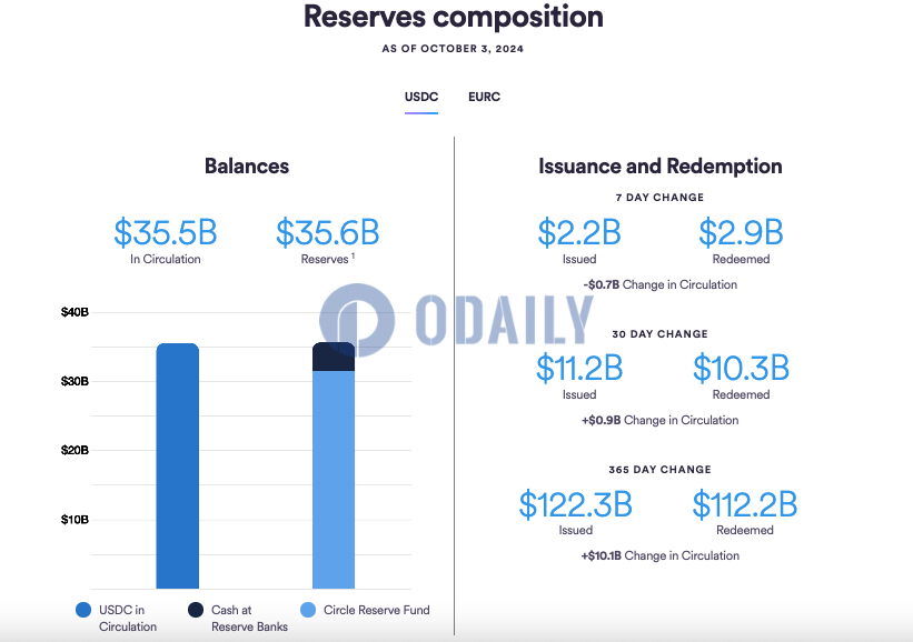 Odaily星球日报讯 据官方数据,截至 10 月 3 日,Circle 在过去 7 天时间里共发行约 22 亿美元 USDC,赎回约 29 亿美元 USDC,流通量减少约 7 亿美元。