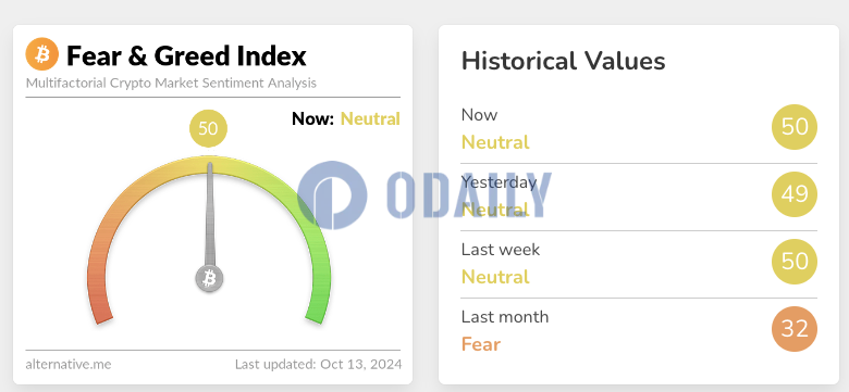 今日恐慌与贪婪指数升至50,等级仍为中性