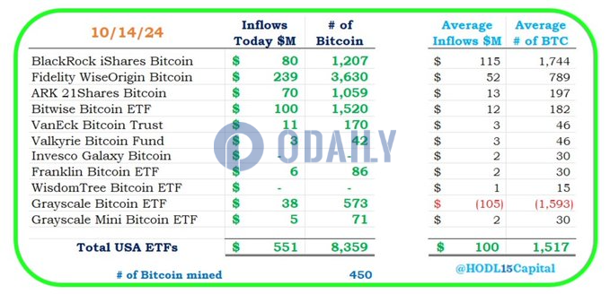 Odaily星球日报讯 据 HODL15Capital 监测,昨日美国比特币现货 ETF 增持 8,359 枚 BTC,是当日 BTC 挖矿产量(450 枚)的 18 倍多。