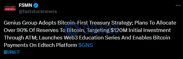 Odaily星球日报讯 据市场消息,Genius Group 拟采用比特币优先的财务战略,计划将 90%以上的储备分配给比特币,推出 Web3 教育系列并在 Edtech 平台上实现比特币支付。