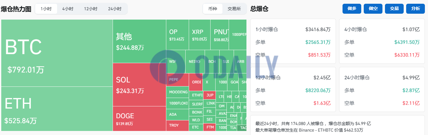 过去1小时全网爆仓3416.84万美元,主爆多单