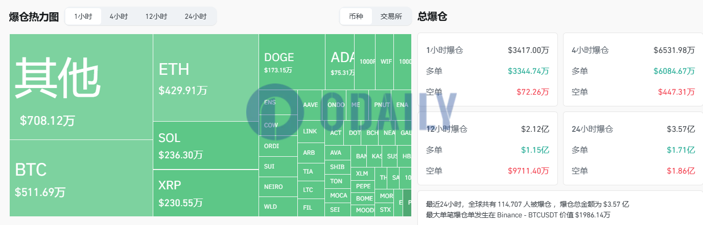 过去1小时全网爆仓3417万美元,主爆多单