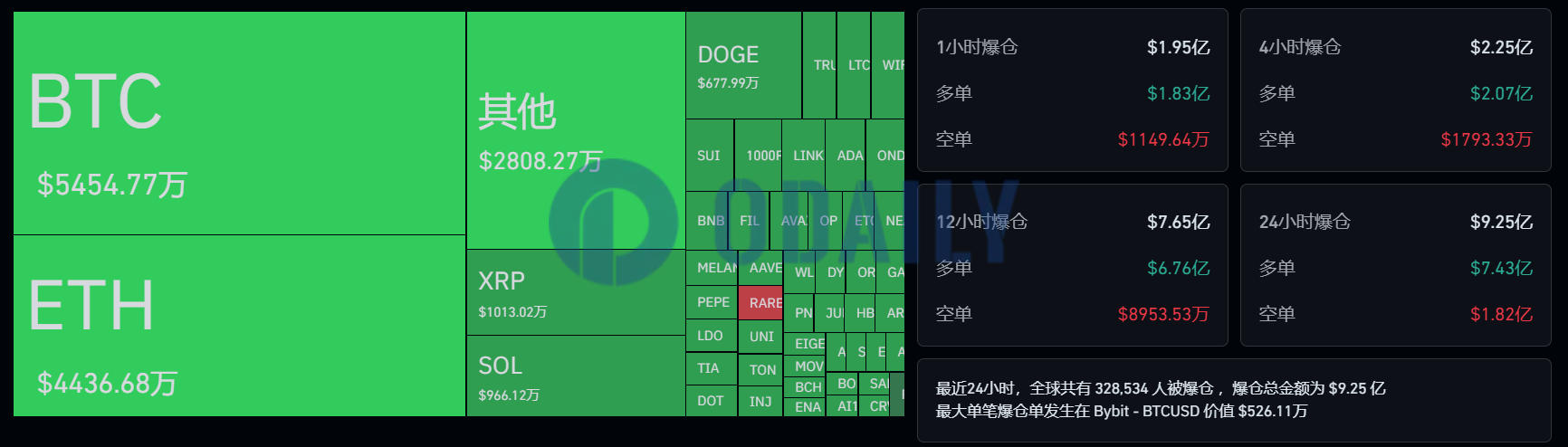In the past hour, the entire network has liquidated 195 million US dollars, mainly long orders