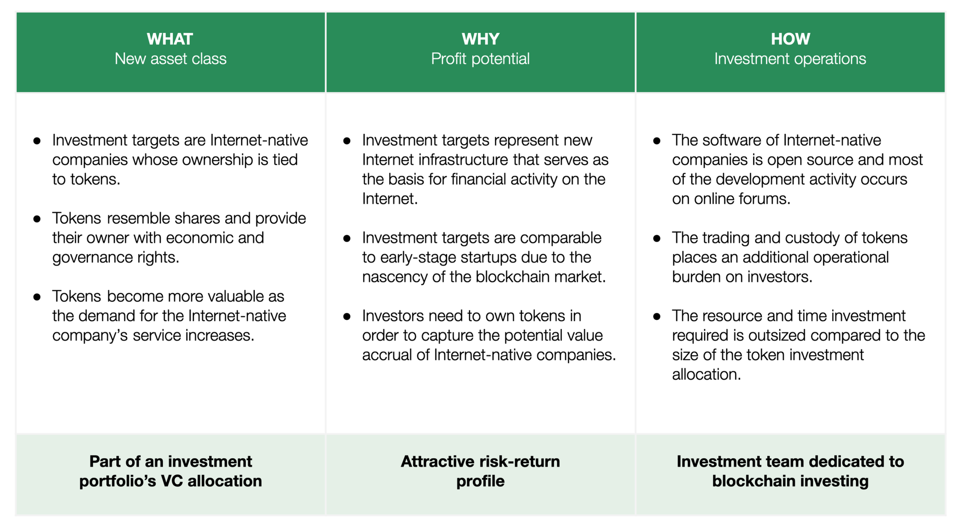 加密领域资产类别的复杂性,监管问题和迅速发展,都使得加密领域投资适合一个长期和积极的投资策略。 区块链技术在许多方面更类似于互联网,它属于一种对不同行业而不是对单一垂直领域有影响的技术,这就是为什么一个成功的投资运营往往需要一个专门团队。