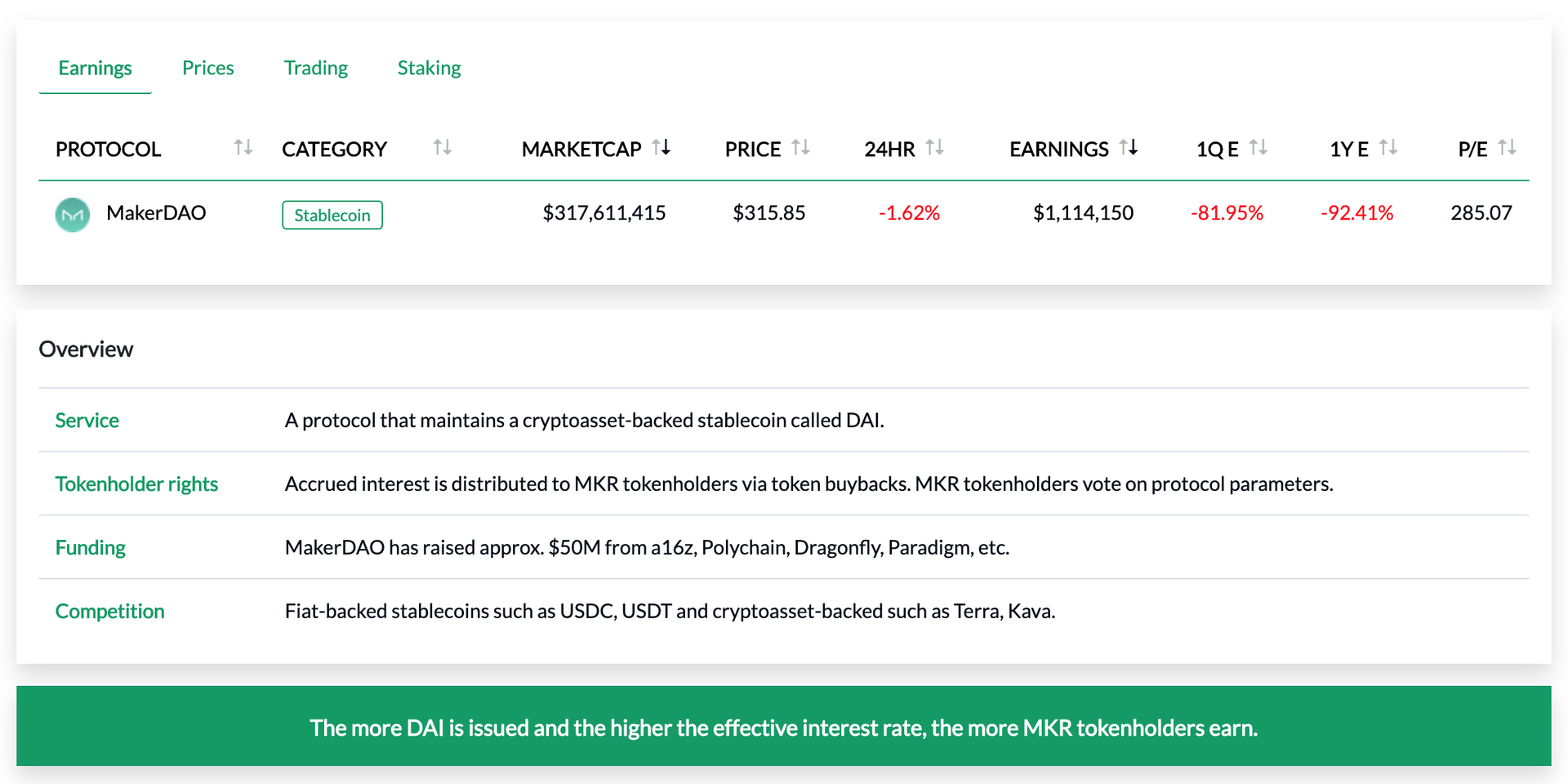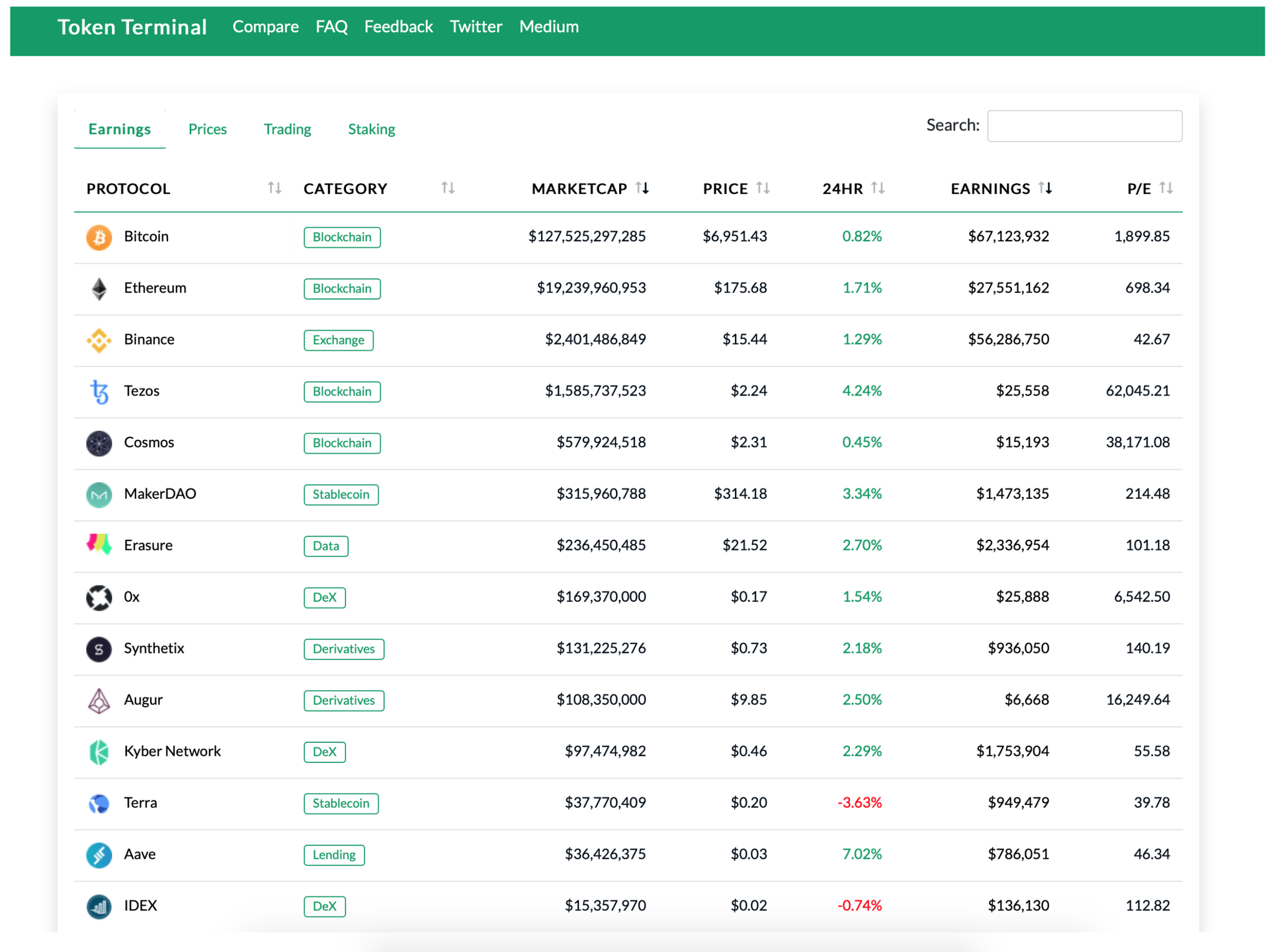 Token Terminal 提供关于加密领域协议的财务和业务指标ーー我们经常会看到这些指标应用于传统公司,例如市盈率。 加密领域协议就像传统商业一样运作,只不过它们是直接在互联网上进行的。