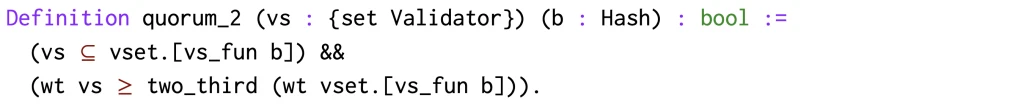 ที่บล็อกใดบล็อกหนึ่ง ถ้าน้ำหนักของเซตย่อยของเซตของ Active Validator เกิน 2/3 ของน้ำหนักของเซตทั้งหมด เซตย่อยนั้นจะเป็นเซตเสียงข้างมาก