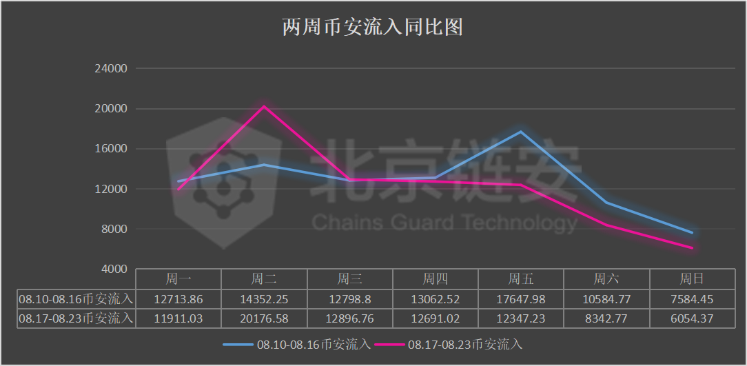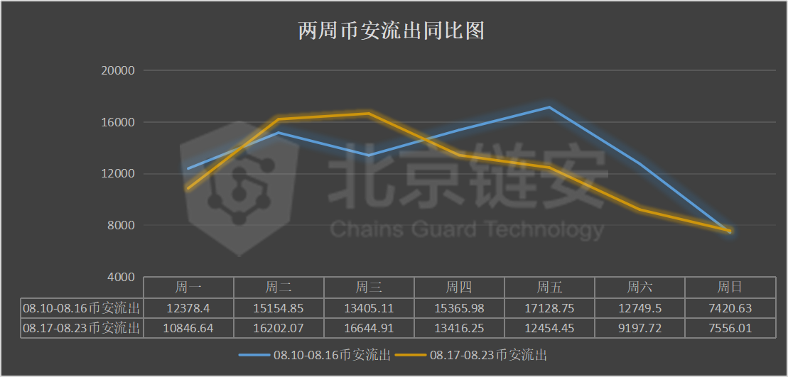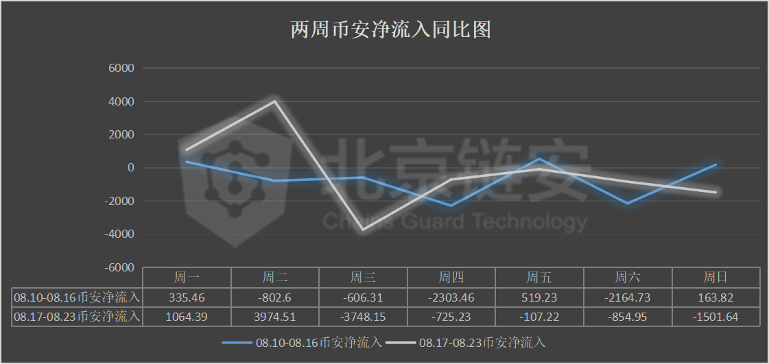 从数据来看,币安交易所继续维持净流出状态,但是周净流出数据进一步收窄。
