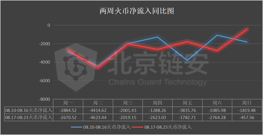 从数据来看,火币交易所继续维持净流出状态,净流出数额小幅下降。