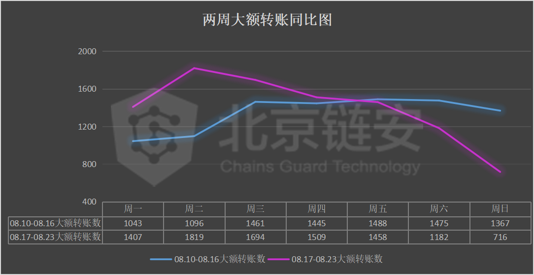 (单笔交易发起额大于100BTC的被认为是大额转账)