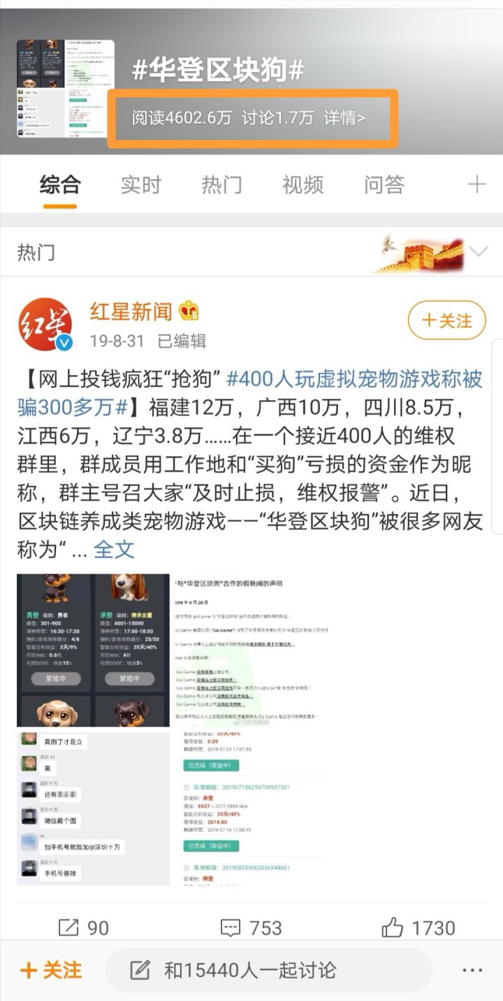 更有意思的是,去年华登区块狗也因为跑路崩盘上了微博热搜,历史真是惊人得相似。