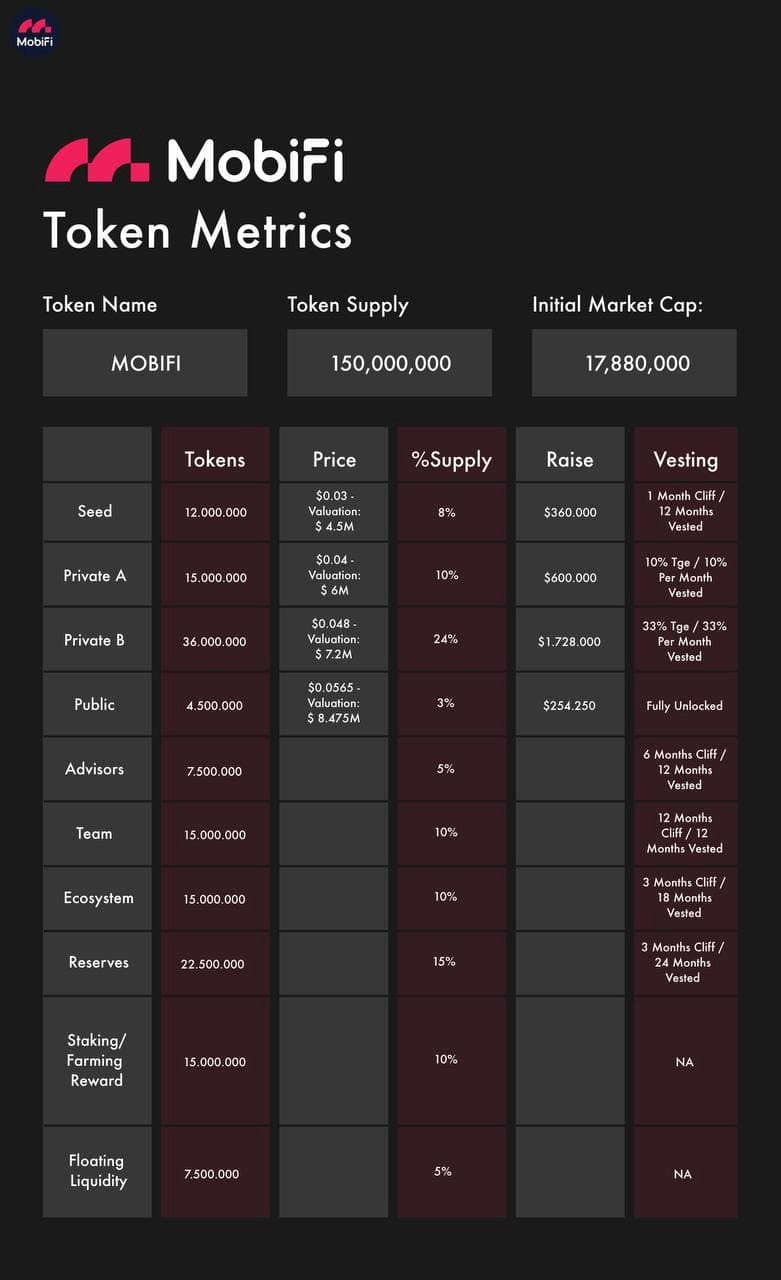 Below is a basic synopsis of the MoFi token metrics, which illustrate the initial market capitalization and total supply of the token. We also include development statistics to clarify the distribution and issuance of initial tokens and form a distribution model to stimulate rapid and sustainable growth of the MobiFi community.