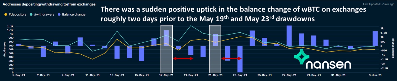 交易所上WBTC的余额变化,取自Nansen的Token God Mode(Nansen)
